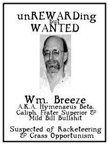I posed this question on an eGroup: "Why did Bill Breeze, Caliph Hymenaeus Beta of the Caliphate pseudo-o.t.o., move from Texas to Germany?" One of his followers quoted Liber OZ: "Man has the right ... to dwell where he will: to move as he will on the face of the earth." To which I replied: "Absolutely! But I did not question his right to move to Germany. I am simply - and already knowing the answer - asking why he fled from the United States?" This was answered with absolute silence.